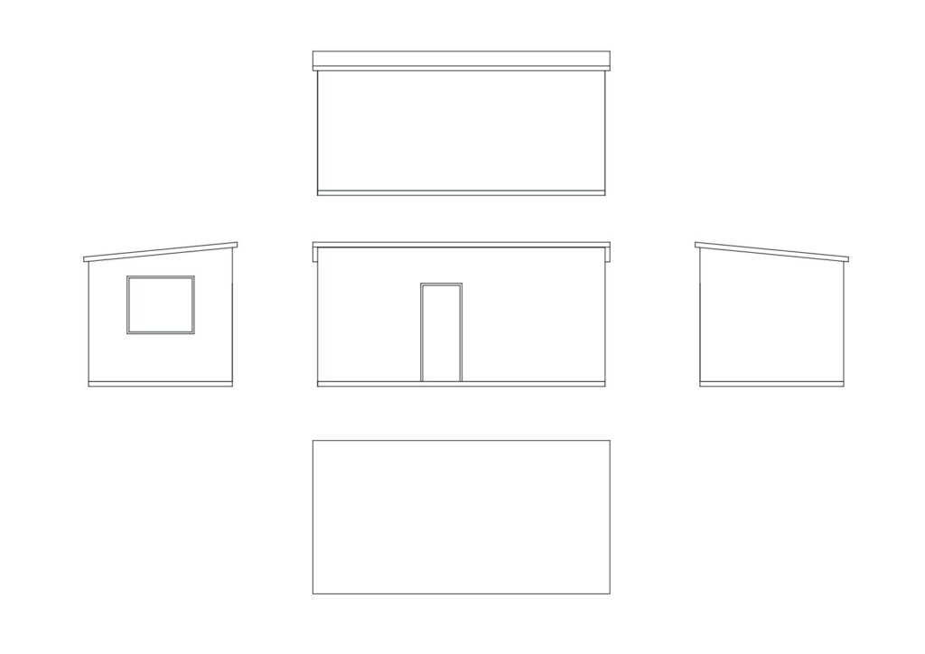 - Stogas: vienšlaitis/dvišlaitis (dengtas trapecine skarda, bituminėmis čerpėmis arba „Classic“ tipo skarda, gali būti įrengti lietvamzdžiai ir latakai)