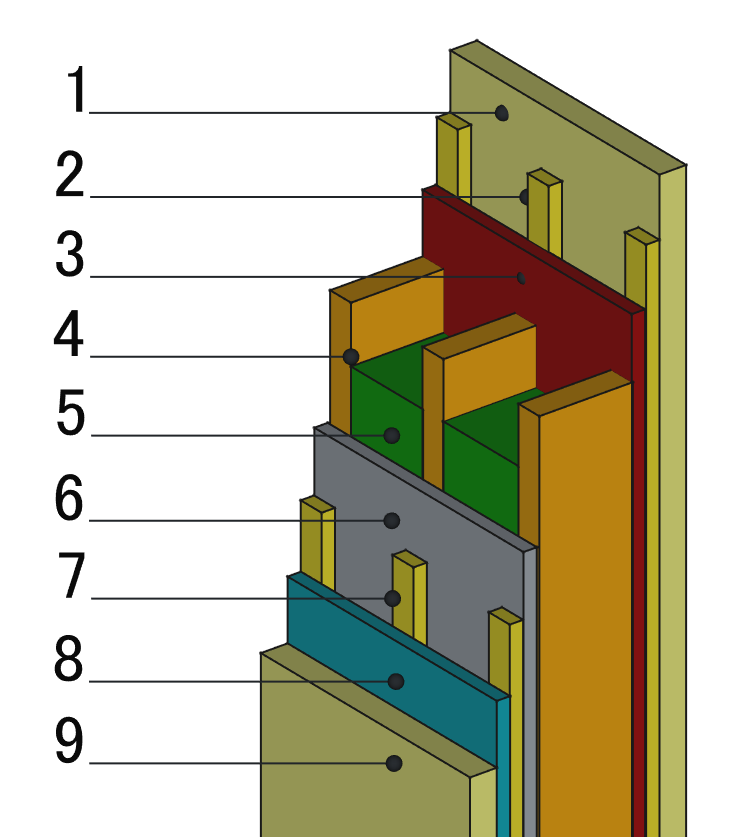 - Sienos: priešvėjinės ir garo plėvelės, oro tarpo tašai